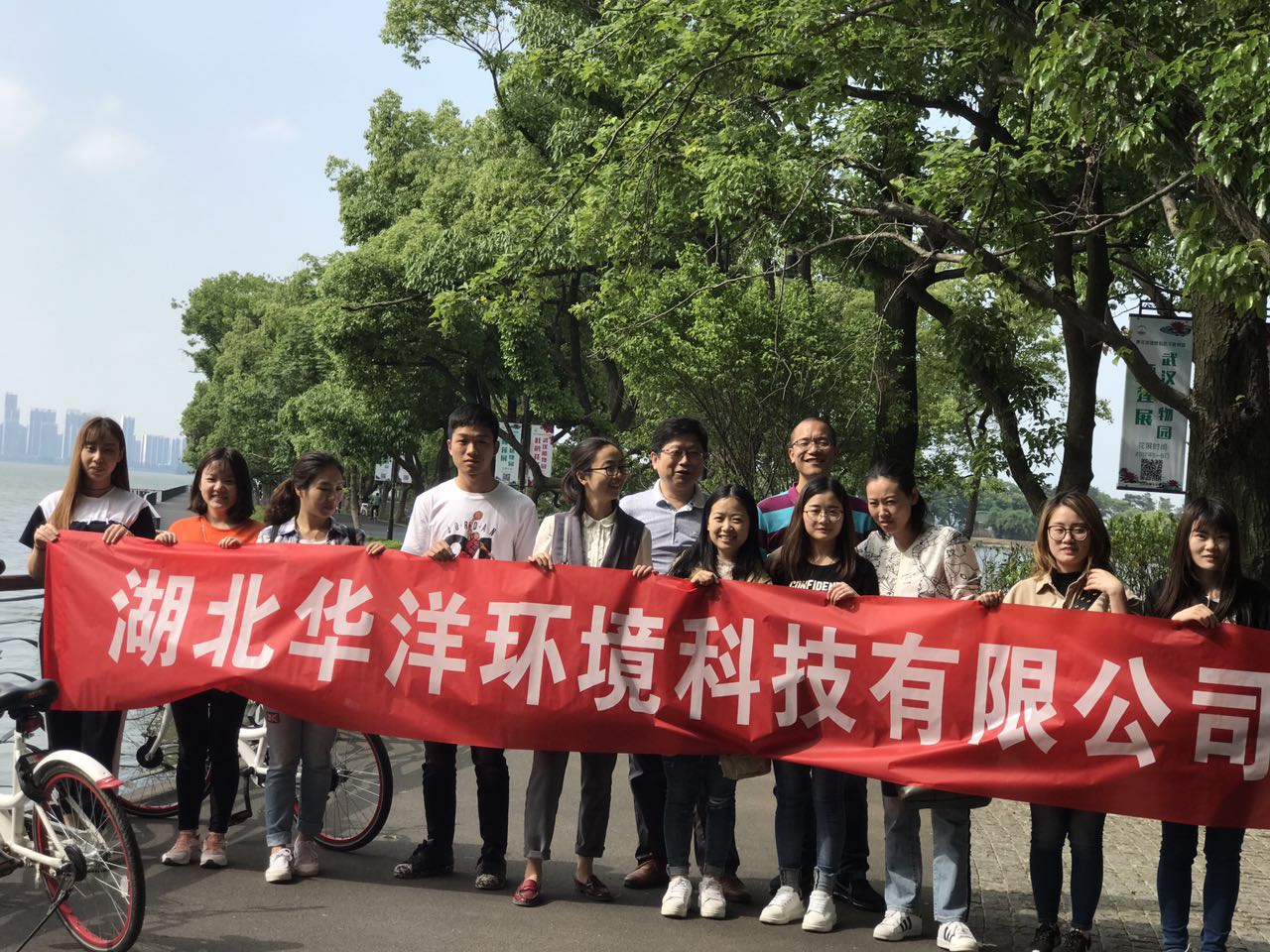 員工們,一起騎著車,迎著風,就著東湖的水,此時、此景,青春好似猝不及防的就回來了......
